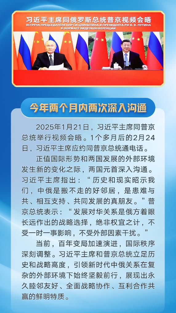 这次访问是习近平主席担任国家主席后第11次到访俄罗斯。10多年来,中俄两国元首在不同场合会面已超过40次。在两国元首的战略引领和关心推动下,中俄全面战略协作伙伴关系迈入新时代,两国关系愈加成熟、坚韧、稳定,两国已探索出一条“不结盟、不对抗、不针对第三方”的相处之道,树立了新型大国关系和相邻国家关系的典范。